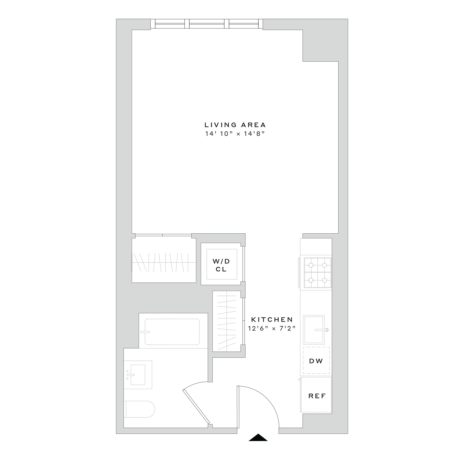 Explore our studio, one and two bedroom floor plans below. Pricing, availability and leasing specials are subject to change without notice.